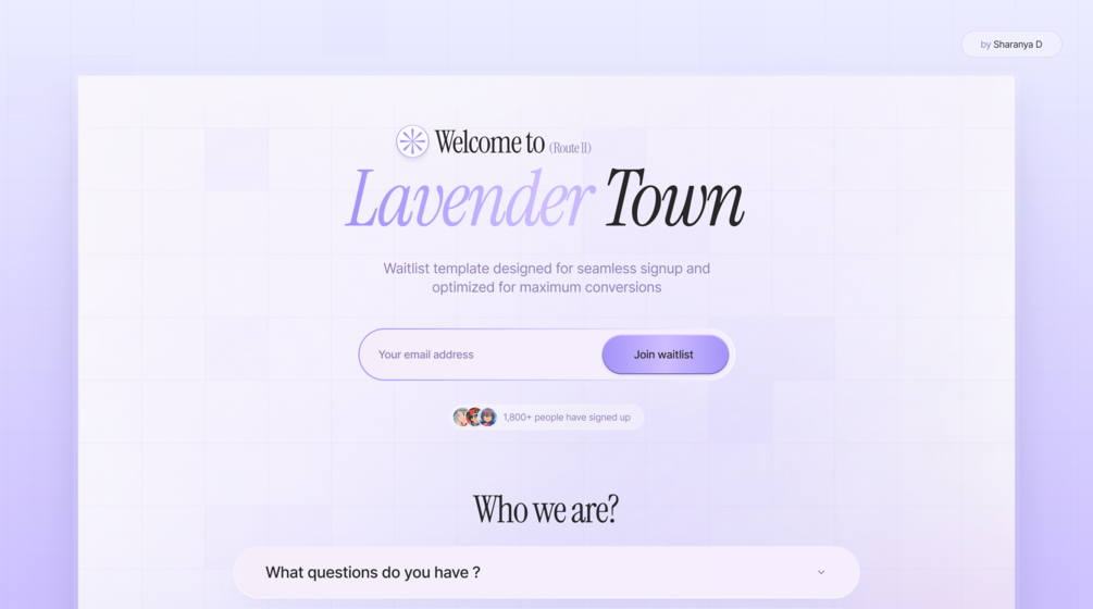 Welcome to (Route 11) Lavender Town, a waitlist template designed for seamless signups and optimized for maximum conversions.